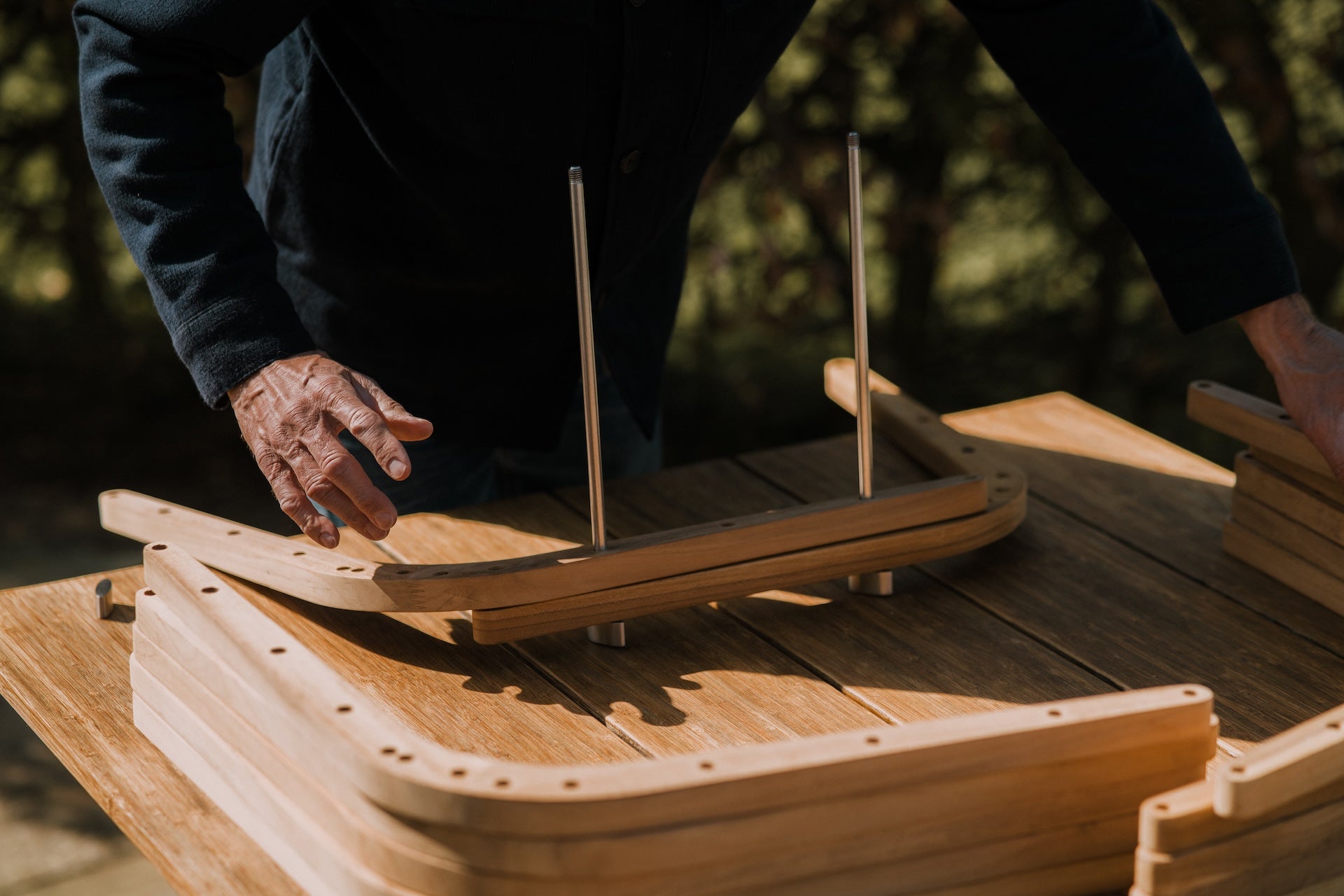 I hjertet af naturen, hvor identiske elementer giver liv til forskelligartede former, forestillede vi os et universelt design lavet af naturlige materialer. Mød Boomerang serien fra Noble Denmark, som er designet af Studio Atmosfera™ – en patenteret, symmetrisk form med asymmetrisk placerede huller, lavet af FSC-certificeret teaktræ og rustfrit stål – hvilket gør det anvendeligt i mange miljøer både inde og ude.