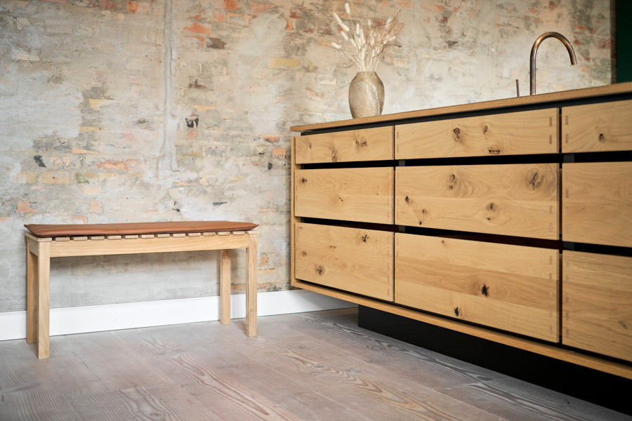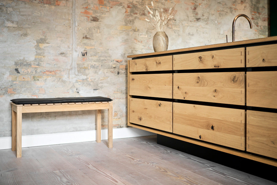 Robust og alsidig bænk med læderhynder