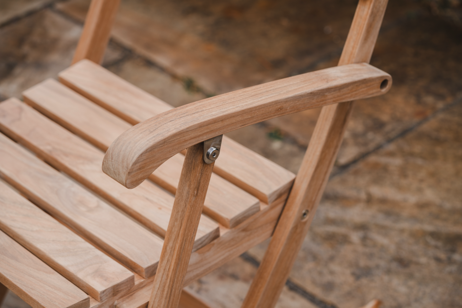 Vores praktisk foldestole i teaktræ, inspireret af maritime traditioner. Disse møbler forener traditionel stil med praktisk funktionalitet og er designet til at bringe en hyggelige atmosfære. Med deres robuste konstruktion og at de foldes let sammen til opbevaring, er de ideelle til både hjemmets terrasse eller altan.