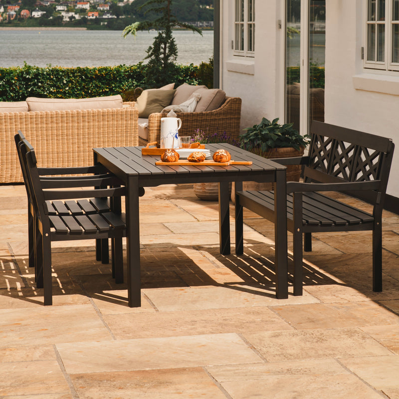 Opdag Tisvilde-seriens blend af klassisk og praktisk håndværk. Inspireret af Patricia-villaers tidløse stil, tilføjer serien et strejf af raffinement. Det ikoniske kryds i ryggen giver ikke kun en smuk detalje, men også en følelse af stil og komfort. Tisvilde i matsort kræver ingen vedligeholdelse, kun aftørring med en fugtig klud. Gør din have og terrasse endnu smukkere med Tisvilde.
