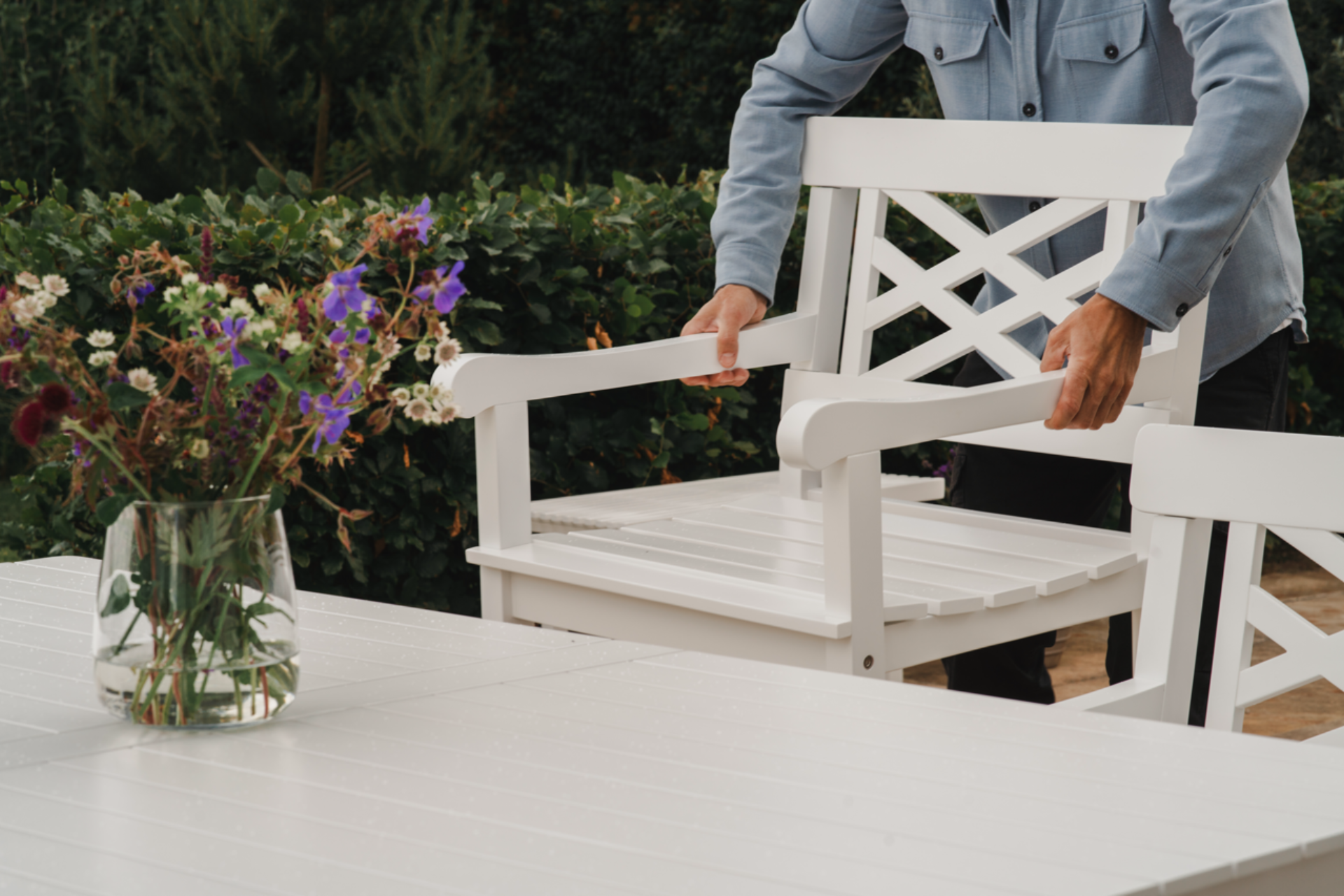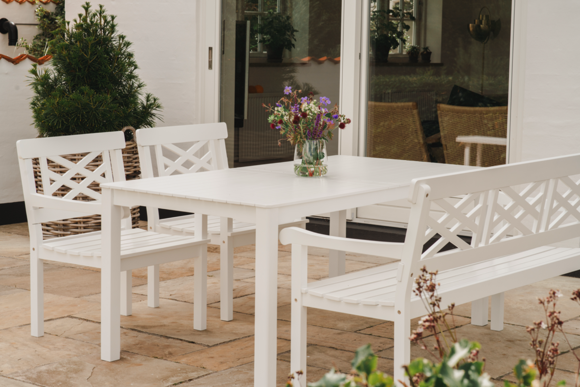 Opdag Tisvilde-seriens blend af klassisk og praktisk håndværk. Inspireret af Patricia-villaers tidløse stil, tilføjer serien et strejf af raffinement. Det ikoniske kryds i ryggen giver ikke kun en smuk detalje, men også en følelse af stil og komfort. Tisvilde i mathvid kræver ingen vedligeholdelse, kun aftørring med en fugtig klud. Gør din have og terrasse endnu smukkere med Tisvilde.